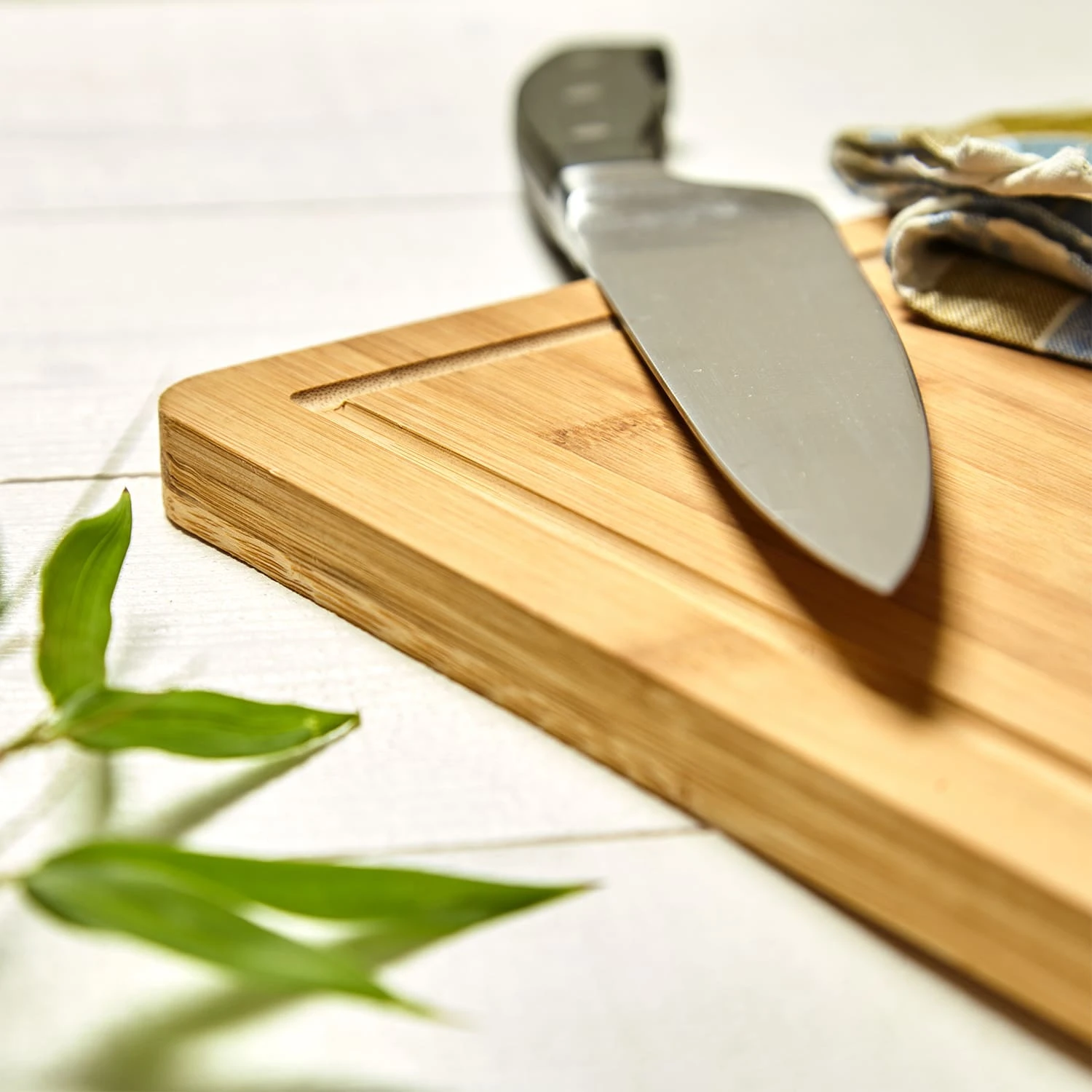 Die nachhaltigen Batvik Küchenbretter aus Bambus von Klarstein sind perfekt für deinen plastikfreien Haushalt! Das zweitgrößte Schneidebrett aus unserer Reihe besitzt eine praktische Saftrinne und geht schonend mit deinen Messerklingen um – diese stumpfen selbst beim kraftvollen Hacken nicht ab! Das sorgfältig verarbeitete Bambusbrett dient auch zum Tranchieren und Servieren – dabei sieht es fantastisch aus und passt zu jedem Interieur.