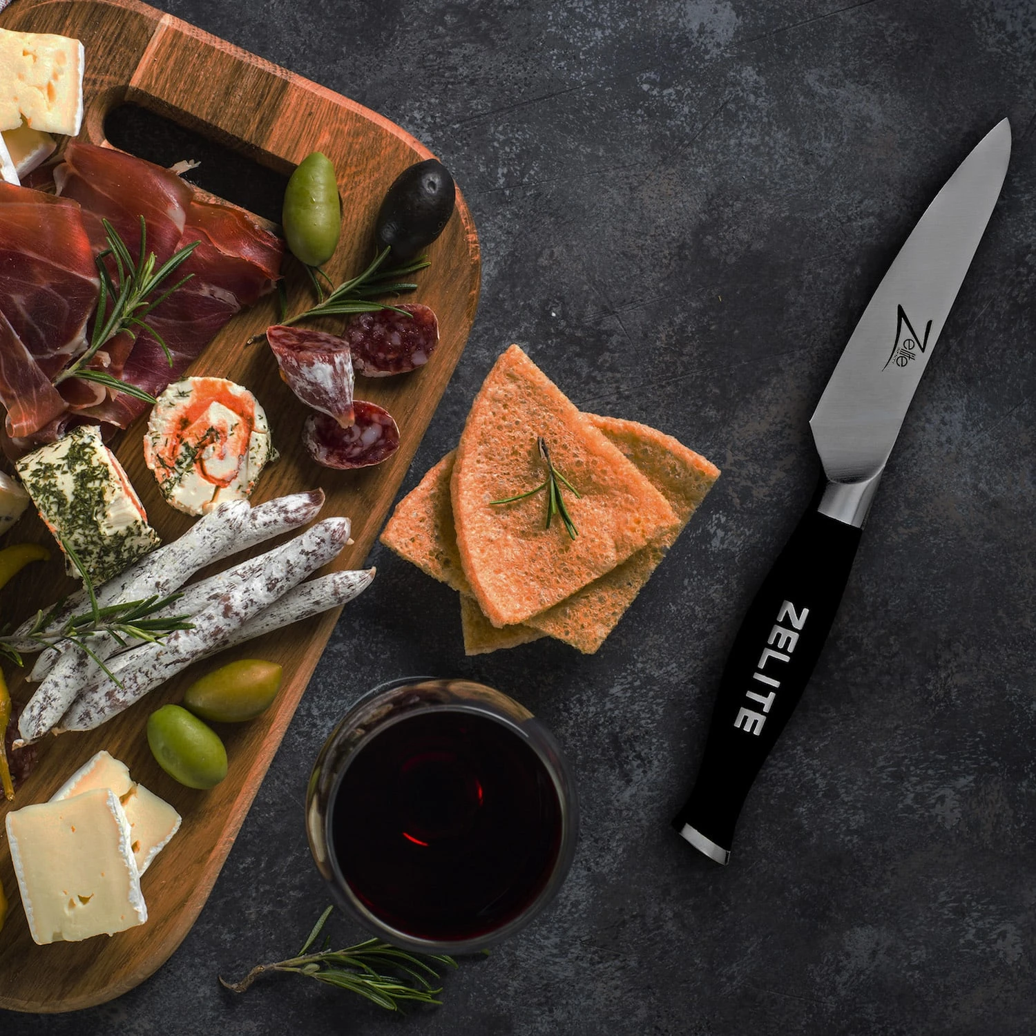 Das Zelite Infinity by Klarstein Comfort Pro 4″ Schälmesser ist dabei das kleine Präzisionswunder in der Küche. Seine Klinge erlaubt das einfache Abtrennen von Obst- und Gemüseschalen sowie sehr genaue Schneidearbeiten zum Beispiel beim Dekorieren. Manche Köche halten es nach dem Chefmesser für das wichtigste Messer in der Küche. Ergänze deine Küchenmesser oder nutze es als perfektes Geschenk für kochende Freunde.