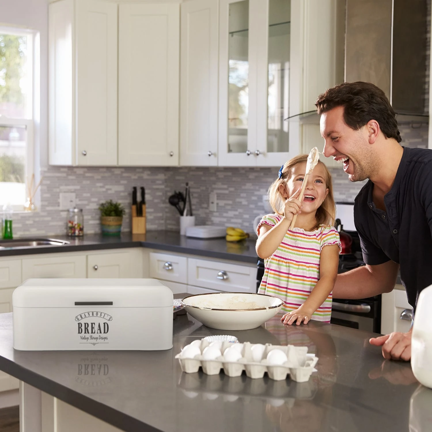 Praktisch und schick! Die große Delaware Brotbox im 40er-Jahre-Look von Klarstein ist nicht nur sehr stabil und groß genug für die gleichzeitige Lagerung von mehreren Broten und Backwaren, sondern auch ein absoluter Hingucker in der Küche. Dank der Lüftungslöcher auf der hinteren Seite des Brotbehälters ist für die wichtige Luftzirkulation gesorgt. Feuchtigkeit und Schimmelbildung werden somit in dem Gehäuse aus hochwertigem Emaille-Stahlblech mit Klappdeckel konsequent verhindert! Die Aufbewahrungsbox lässt sich schnell und einfach mit einem feuchten Tuch reinigen.