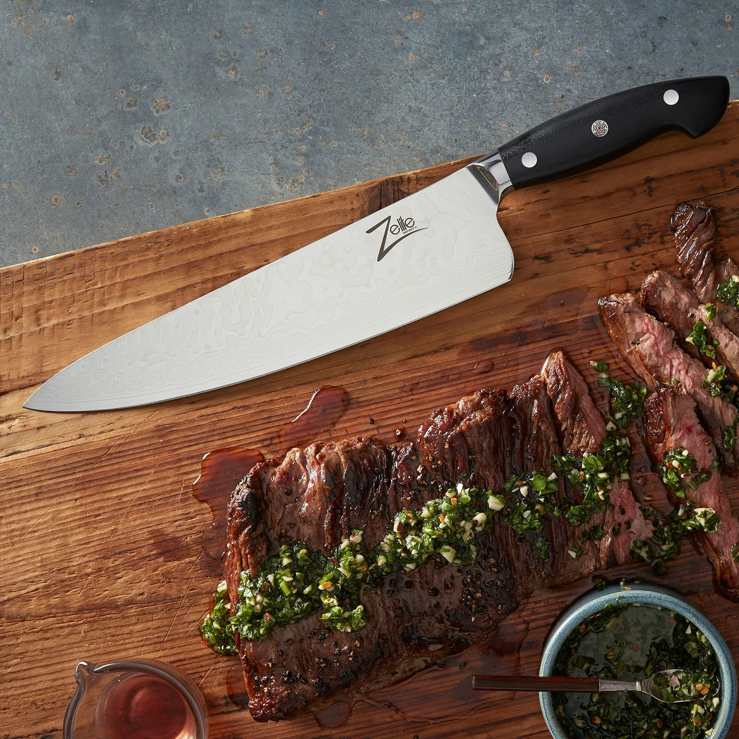 Unsere Spitzenserie wurde für passionierte Köche entwickelt, die nach Perfektion streben. Die Infinity Executive-Plus Messerserie von Zelite Infinity by Klarstein bietet herausragende Leistung und unvergleichliche Schönheit für jede Küche. Mit einem einzigartig gestalteten Griff mit Buckelrücken und ultratiefen Klingen aus 45-lagigem japanischem Premium-Damaszenerstahl.