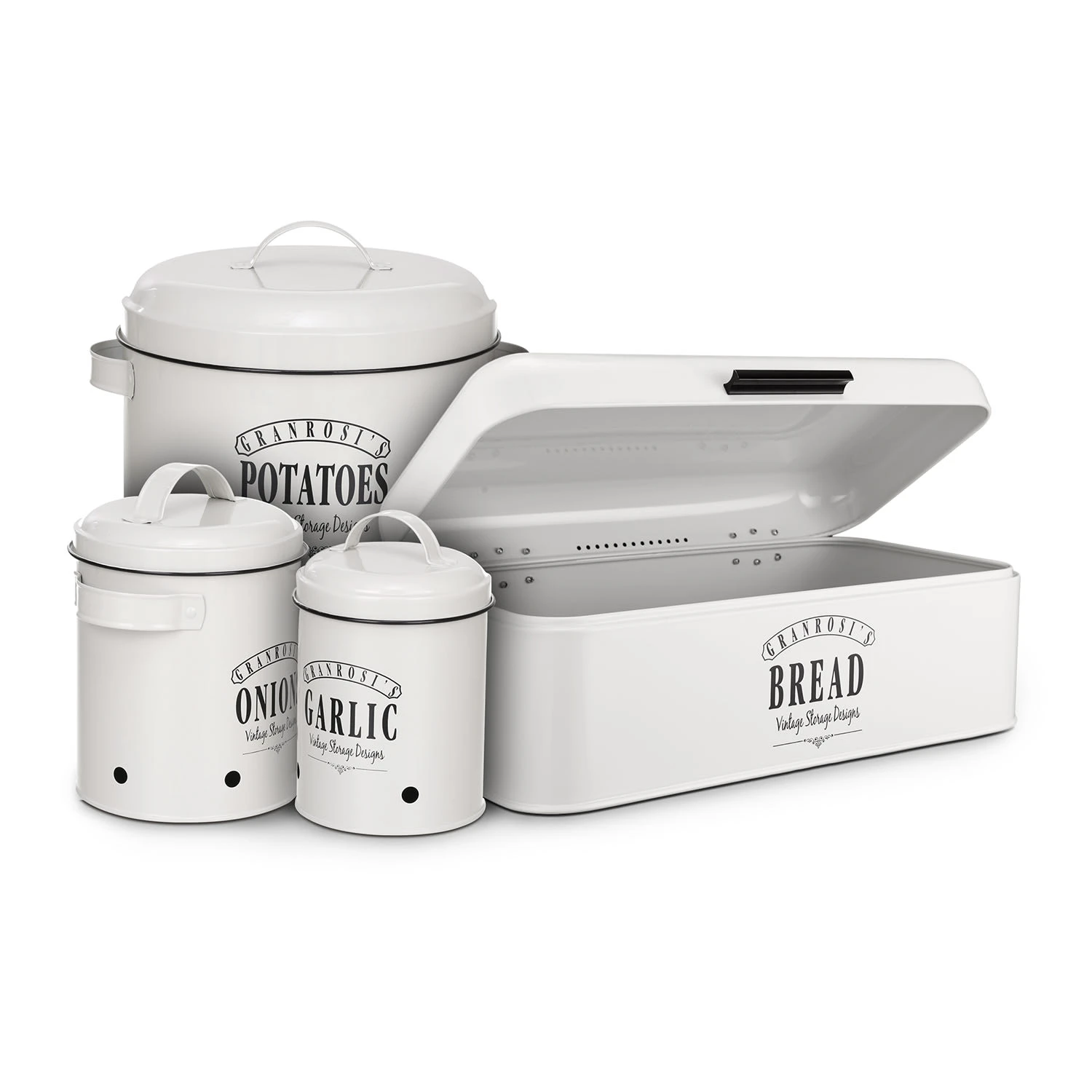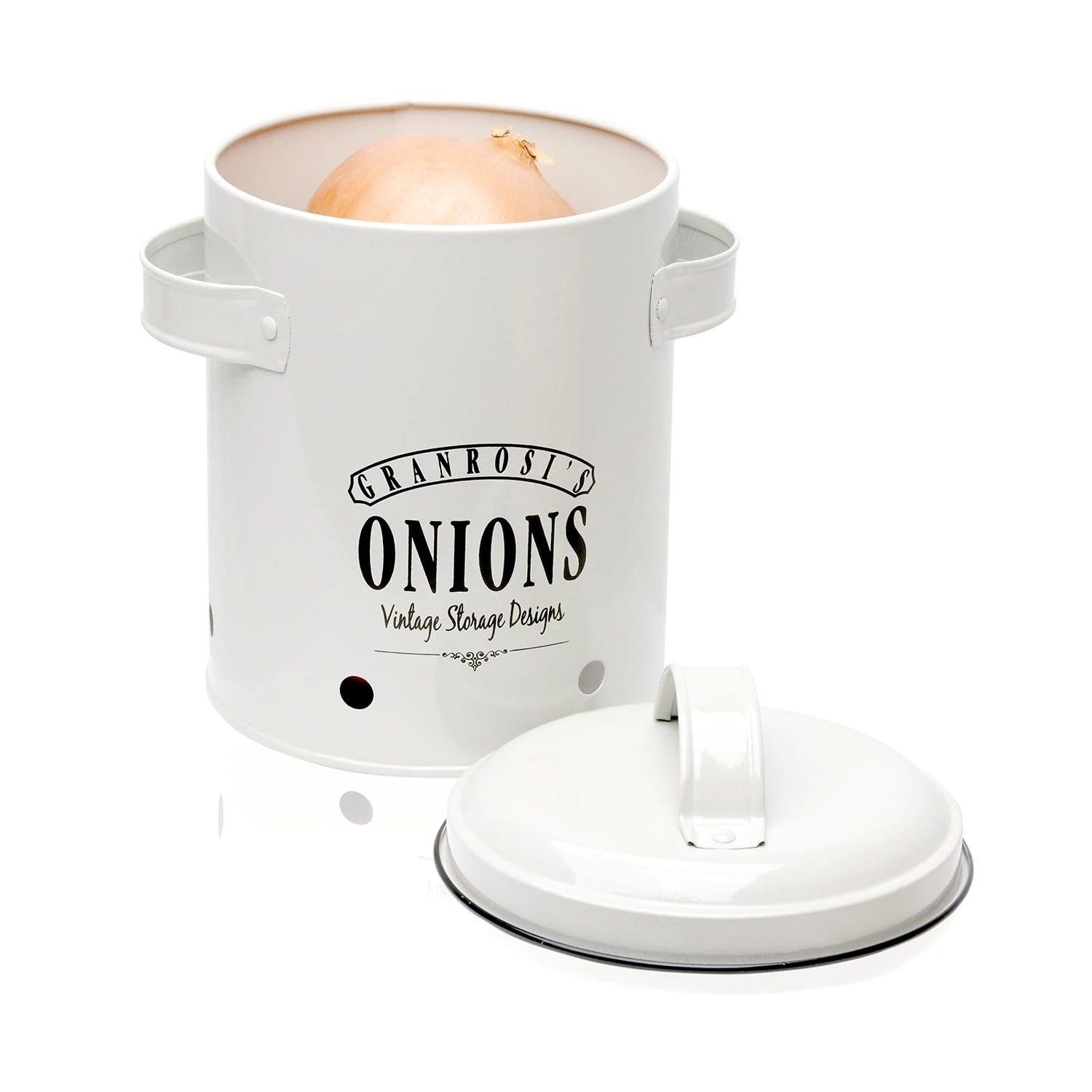 Der platzsparende Emaille-Zwiebeltopf Iowa von Klarstein im Vintage-Design der 40er Jahre mit der Aufschrift „ONION“ ist nicht nur sehr stabil und groß genug für die Zwiebellagerung von ca. 1,6 kg, sondern auch ein absoluter Blickfang in jeder Küche. Was oft vergessen wird: Zwiebeln sind vor allem dann lange haltbar, wenn sie dunkel und bei leichter Luftzirkulation gelagert werden. Durch die kleinen Lüftungslöcher im Zwiebelbehälter wird die Keimbildung verhindert und die Zwiebeln bleiben länger frisch. Die Aufbewahrungsbox kann selbstverständlich auch für die Lagerung von anderem Gemüse verwendet werden und lässt sich schnell und einfach mit einem feuchten Tuch reinigen. Mit Maßen von ca. 17 x 22,5 x 14 (BxHxT) passt dieses Zwiebellager im Landhaus-Stil bequem auf dein Sideboard, deine Küchenzeile oder in den Küchenschrank. Das stabile rostfreie Emaille-Stahlblech ist sehr robust und kann – anders als Steingut oder Porzellanbehälter – den ein oder anderen unabsichtlichen Sturz überstehen.