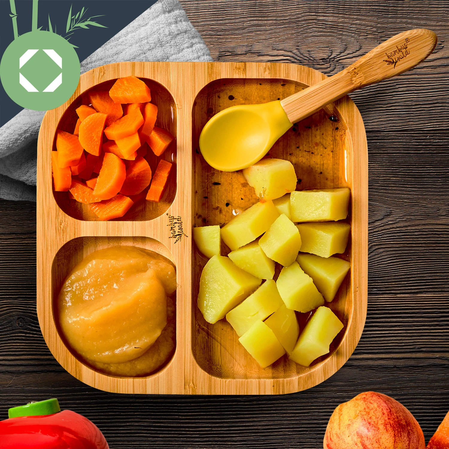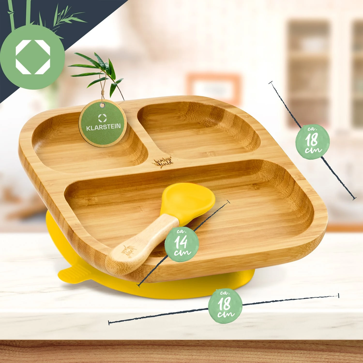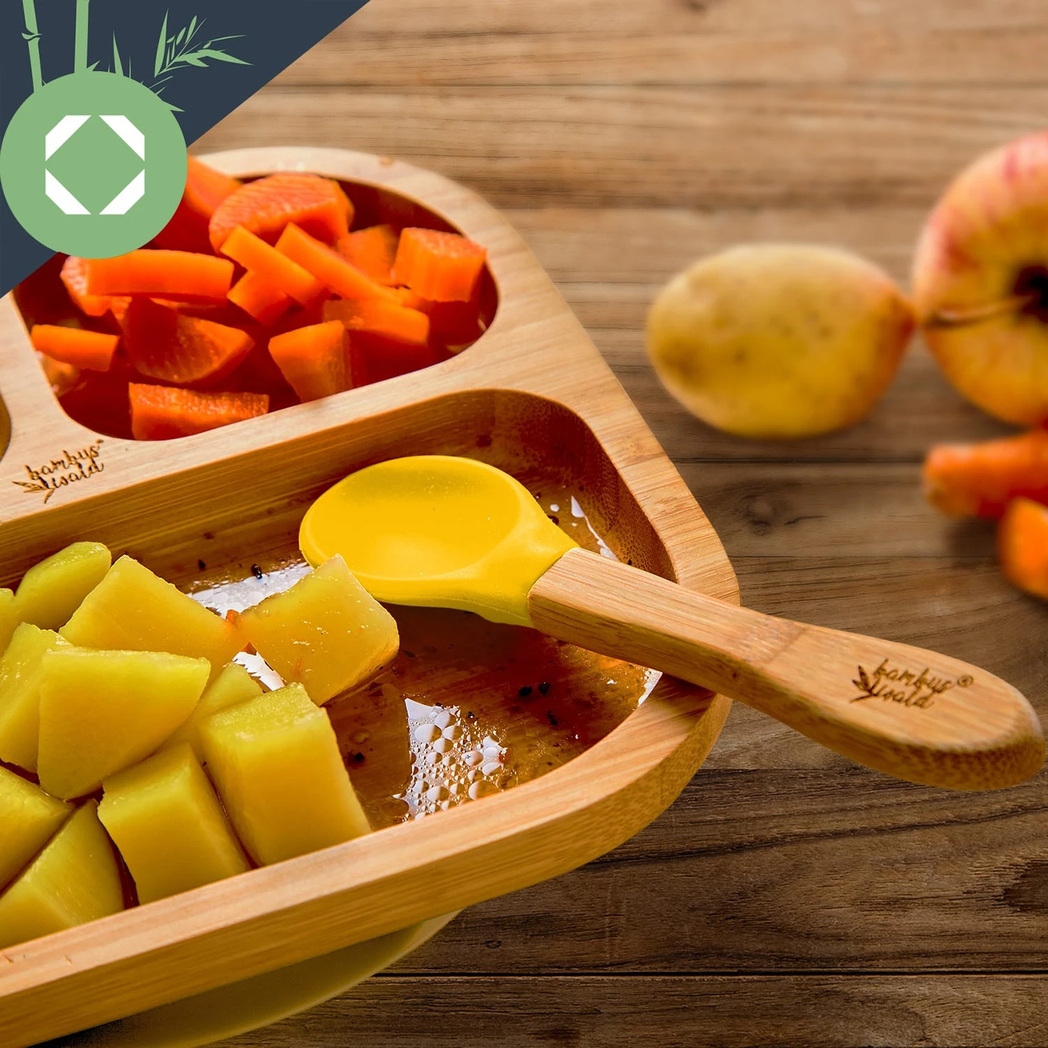 - Geschirrset für Kleinkinder mit Bambusteller und Löffel