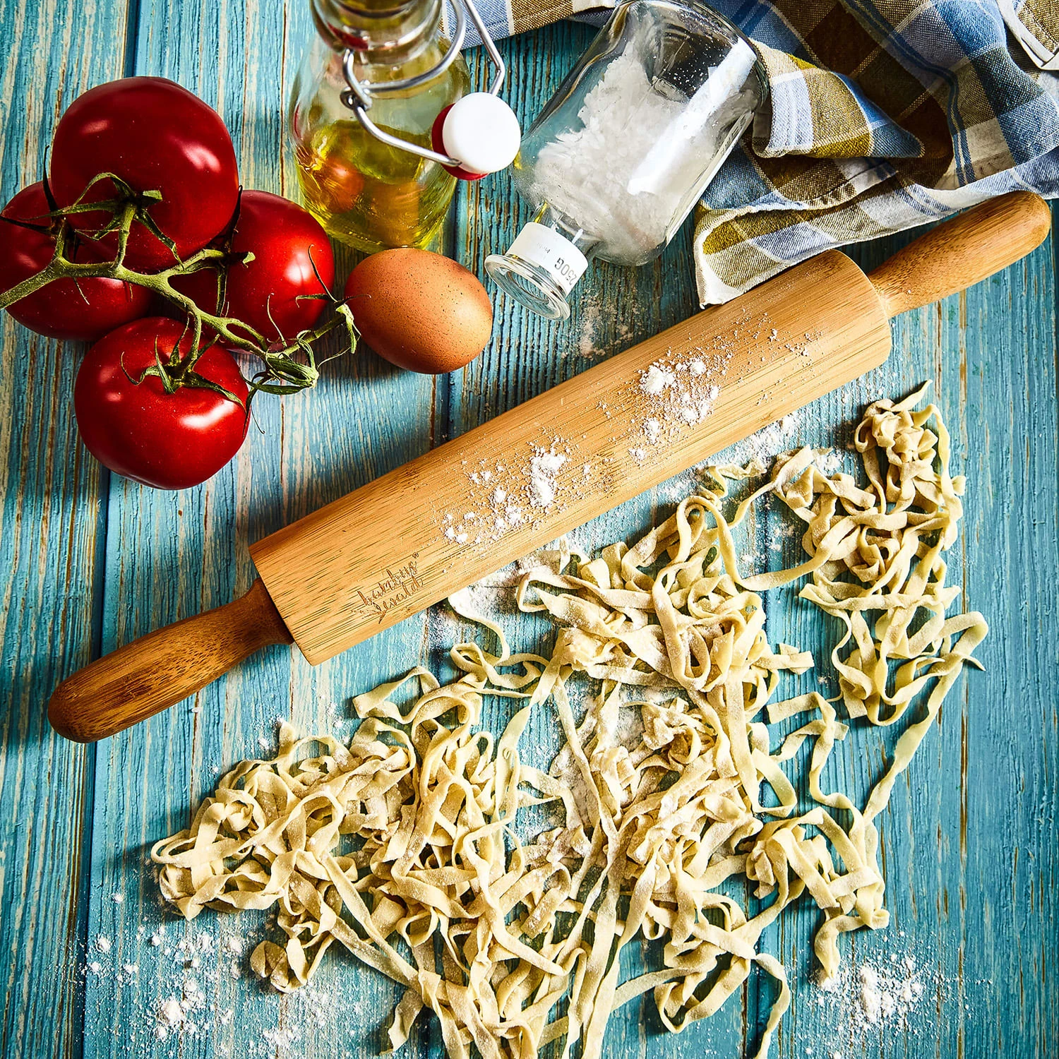 Mit dem Nudelholz von Klarstein haben Kochbegeisterte ein nützliches, effizientes und umweltfreundliches Küchenwerkzeug zur Hand! Die Teigwalze aus 100 % Bambus ermöglicht es dir, leckere Teigspezialitäten selbst herzustellen und verschiedenste Köstlichkeiten zu backen. Der Teigroller liegt fest in der Hand und lässt sich mühelos zur Zubereitung von Kuchen, Torten, Plätzchen, Strudel, Pizza und Pasta verwenden.