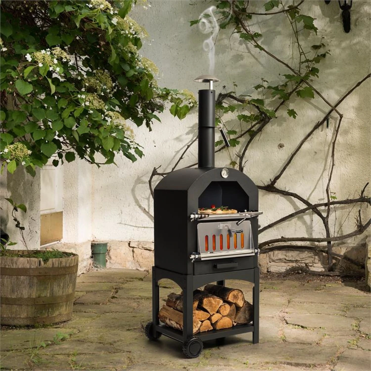 Leckere Pizza auf dem Stein gebacken oder knuspriges Holzofenbrot, mit dem Klarstein Pizzaiolo Perfetto Grillofen gelingen italienische Spezialitäten genauso wie rustikale Broterlebnisse! Auf Holz oder Holzkohle backen die Köstlichkeiten entweder auf dem 30,5 x 30,5 cm großen Schamott-Stein oder direkt auf dem 2-teiligen, 50 x 35 cm Edelstahl-Rost. Natürlich kann der Outdoor-Backofen nicht nur Teig: Auch BBQ-Gerichte wie Pulled Pork, Spare Ribs oder Burger gelingen in seinem Inneren. Für die einfache Überwachung der richtigen Gar-Temperatur sorgt das integrierte Thermometer. So weiß der Grillchef immer, wann er die Lüftungsschieber öffnen oder schließen muss. Durch die Materialdicke von 1,2 mm Stahl ist der Grill nicht nur äußerst robust, sondern speichert auch langfristig die Wärme und erzielt so noch bessere Grillergebnisse.