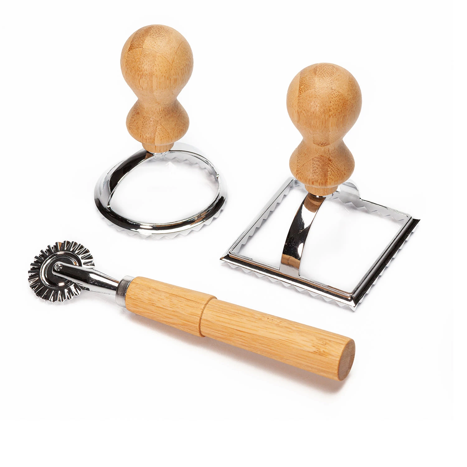 - 3er Set: 2 Ausstecher (rund und eckig) sowie Teigrad (Wellenrand)