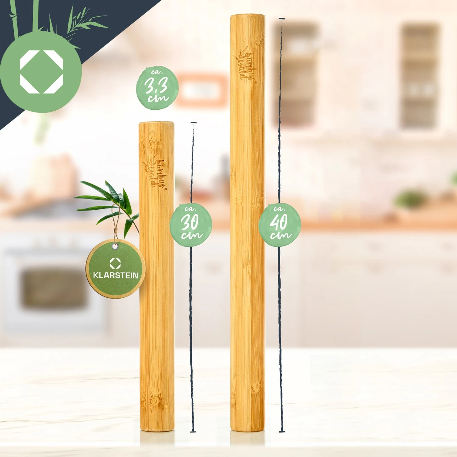 Mit dem Teigroller 2er-Set von Klarstein kannst du leckere Pastaspezialitäten selbst herstellen und verschiedenste Köstlichkeiten backen! Die traditionellen Küchenwerkzeuge sind aus massivem und unbehandeltem Bambusholz gefertigt und sind unterschiedlich lang. Die umweltfreundlichen Teigwalzen liegen fest in der Hand und lassen sich mühelos zur Zubereitung von Tortenböden, Plätzchen, Biskuits, hausgemachter Pizza, Nudeln, Teigtaschen oder Lasagne-Blättern verwenden.